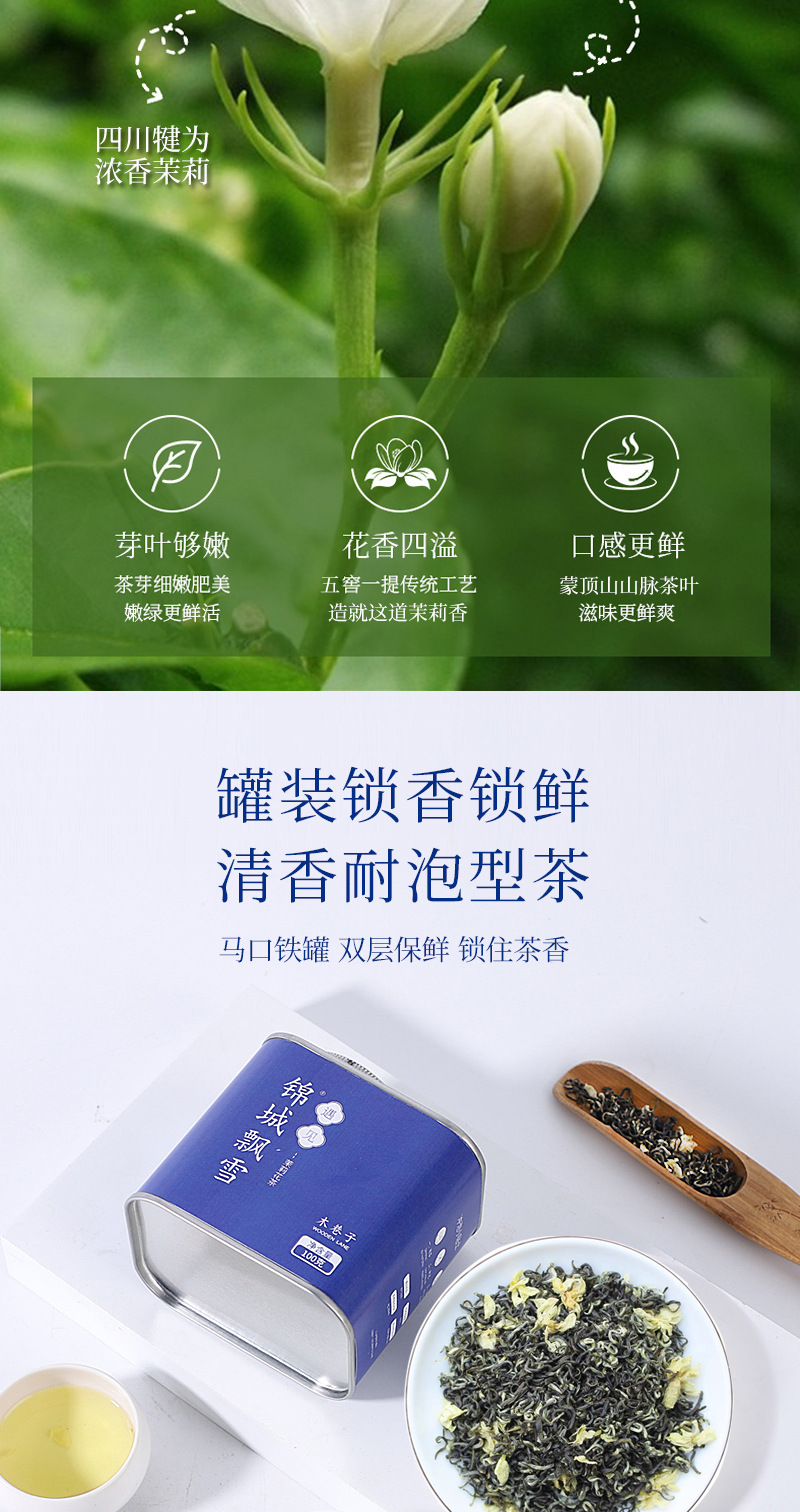 2024新茶款锦城飘雪茉莉花茶浓香型特级冷泡茶四川雅安茶100g/罐 1罐