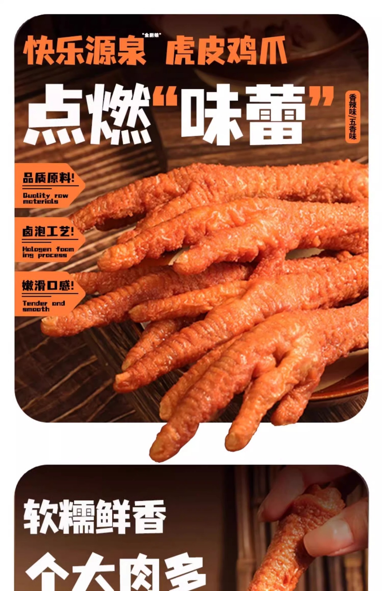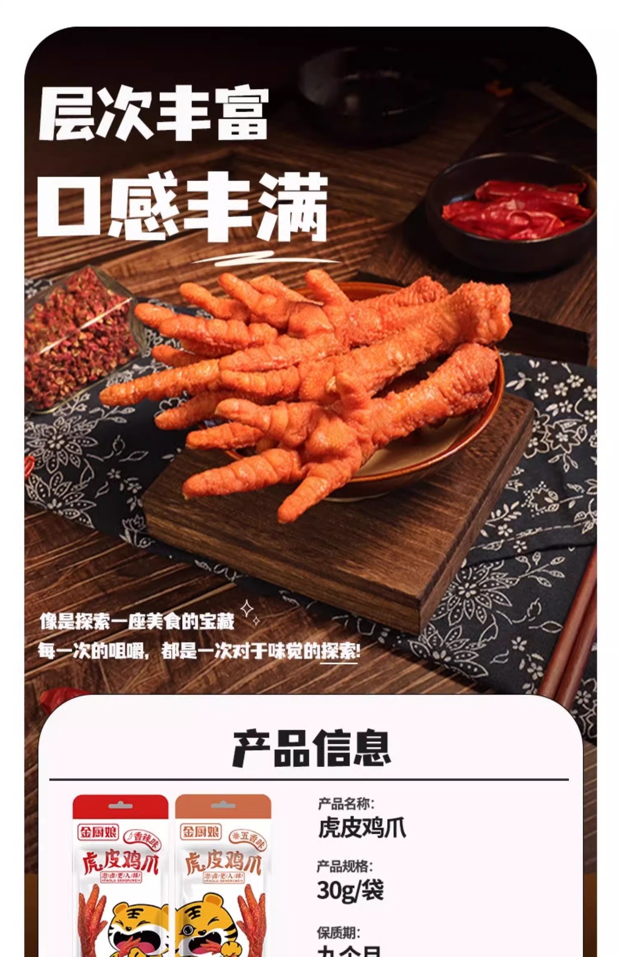 金厨娘鸡爪虎皮凤爪30g即食卤味网红零食 五香香辣鸡肉零食批发 10包