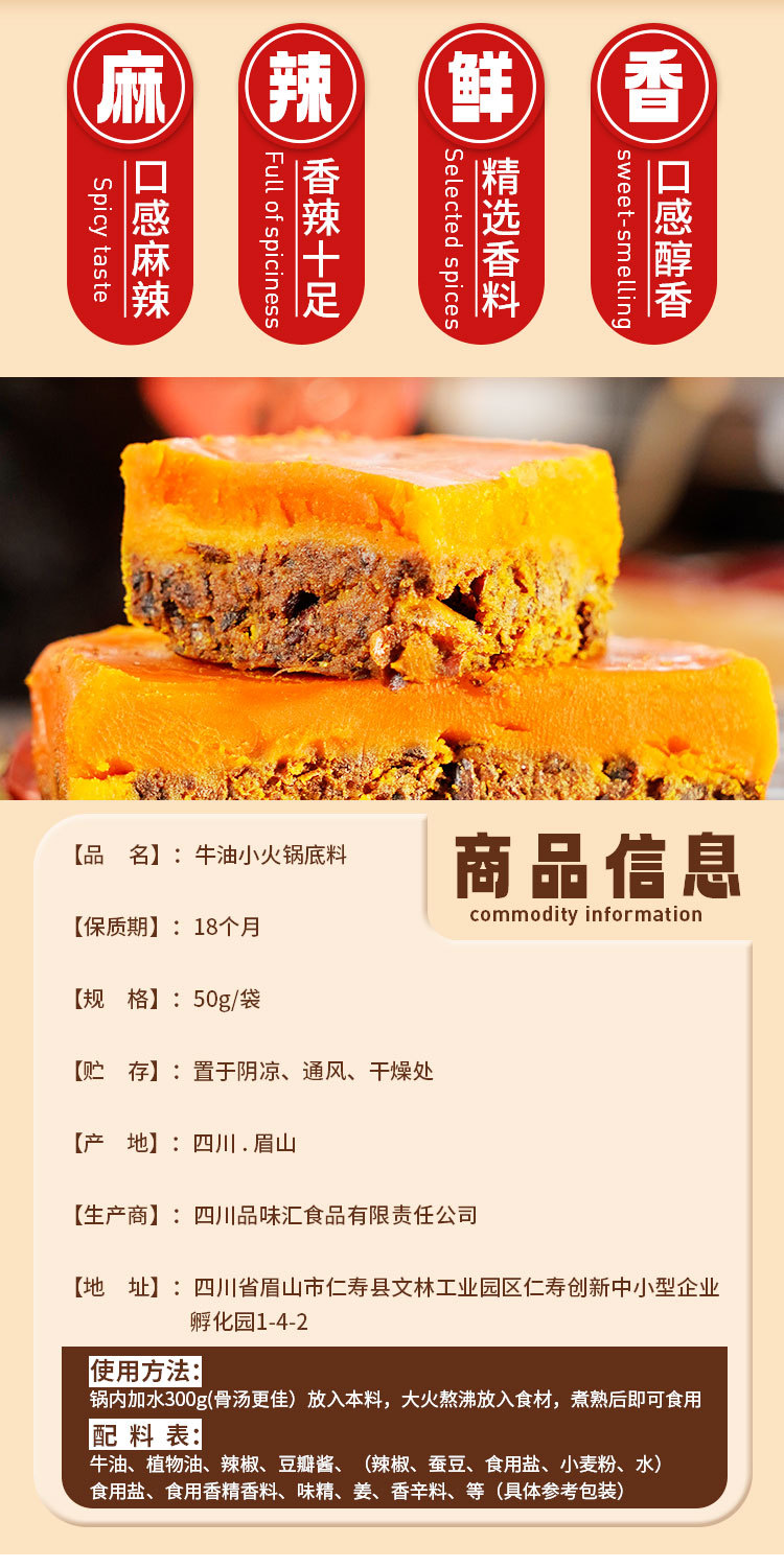 重庆真牛油火锅底料50g独立包装一人份麻辣烫串串冒菜调料家用 1包